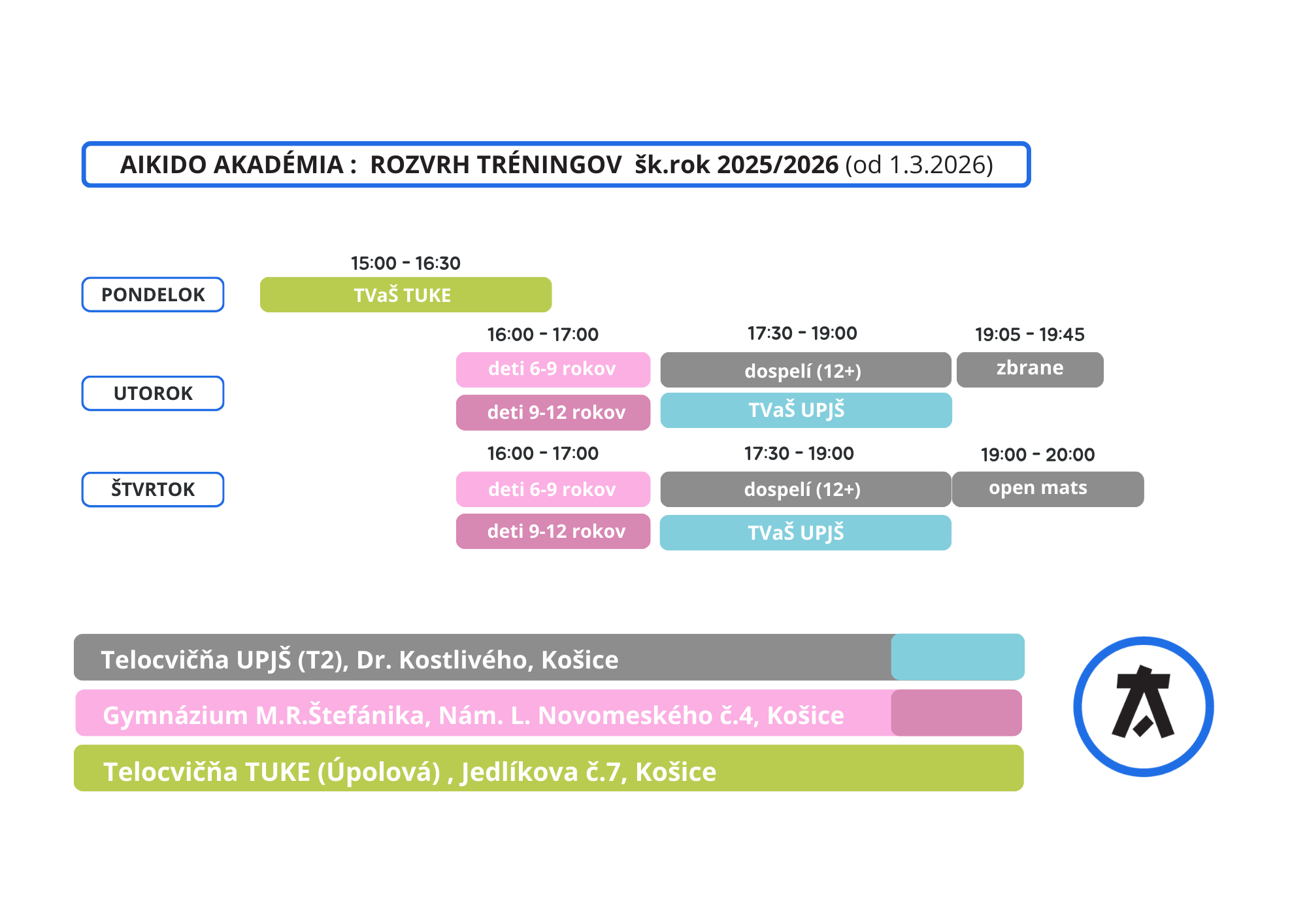 Rozvrh tréningov na školský rok 2025/2026 :